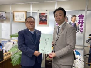 𠮷井先生は、国土交通大臣政務官に就任され多忙なスケジュールの中、お時間をいただき丁寧に要望内容をお聞きいただきました。