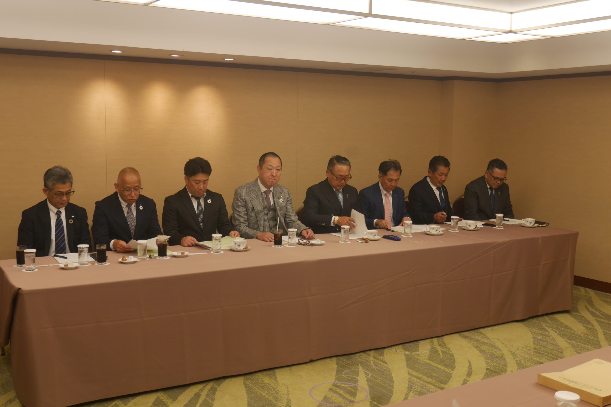 令和7年10月18日13時、平島会長、蒔田副会長、宮本副会長、藤木副会長、村尾副会長より、公明党選出議員に対し京都府トラック協会独自の要望事項「貨物集配中の車両に係る駐車規制見直し」、「軽油引取税の暫定税率廃止」、「運輸事業振興助成交付金の継続」等を含めた、全日本トラック協会の全国統一の要望書を提出、政策実現に向け申し入れを行いました。