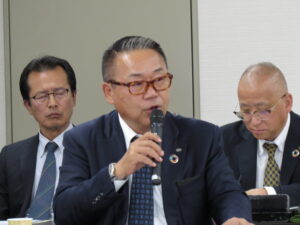 今年7月近畿運輸局長に就任された服部真樹氏と京都の自動車関係団体長との懇談会が行われ、当協会平島会長より、トラック業界の現状報告と課題について説明、国の政策や取組への御礼を述べるとともに、業界指針への理解と協力、国の更なる支援について意見交換を行いました。服部局長からは、業界の取組に対する感謝の言葉と一層の相互協力への期待が示されました。